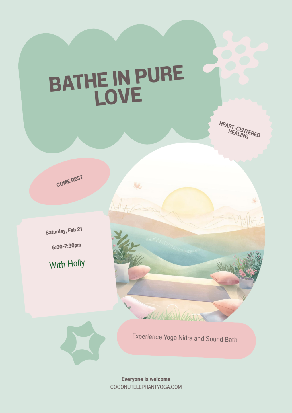Step into a sanctuary of deep rest and heart-centered healing with Bathe in Pure Love, a nurturing experience that begins with Yoga Nidra and gently flows into a Sound Bath.
